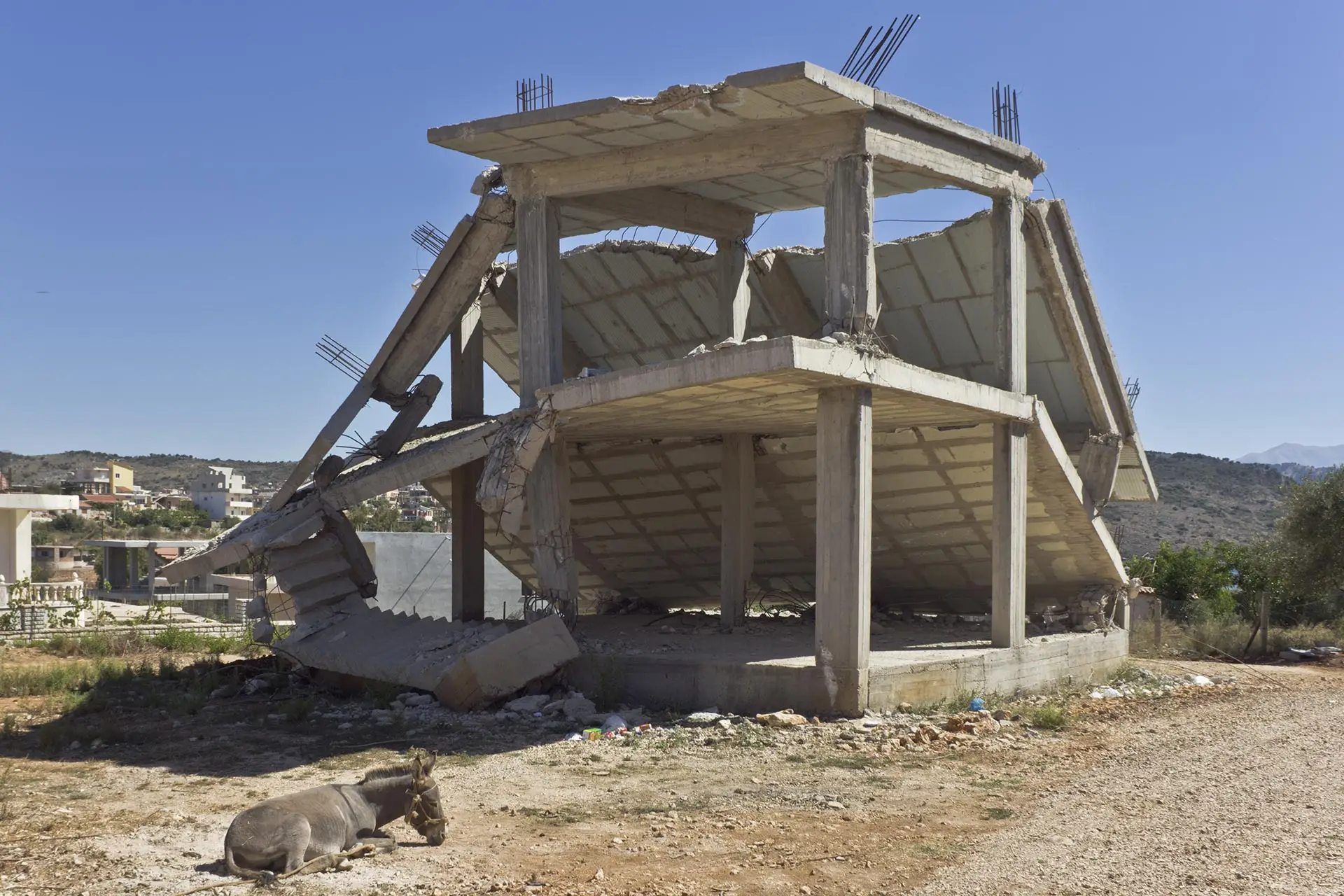 In mostra, frammenti di lavori, materiali parziali, visioni in divenire non si presentano come corpi chiusi ma si sovrappongono, si mescolano, si rispondono. Realizzate tra Albania, Calabria e Libano – geografie segnate da discontinuità non solo architettoniche ma anche politiche e simboliche – le opere compongono un paesaggio in cui il cemento è sintomo di temporalità spezzate, promesse sistemiche non mantenute, vite sospese tra attesa e sopravvivenza. Ne nasce una narrazione stratificata e mobile, che non descrive ma scava, mettendo in tensione rovina e possibilità.