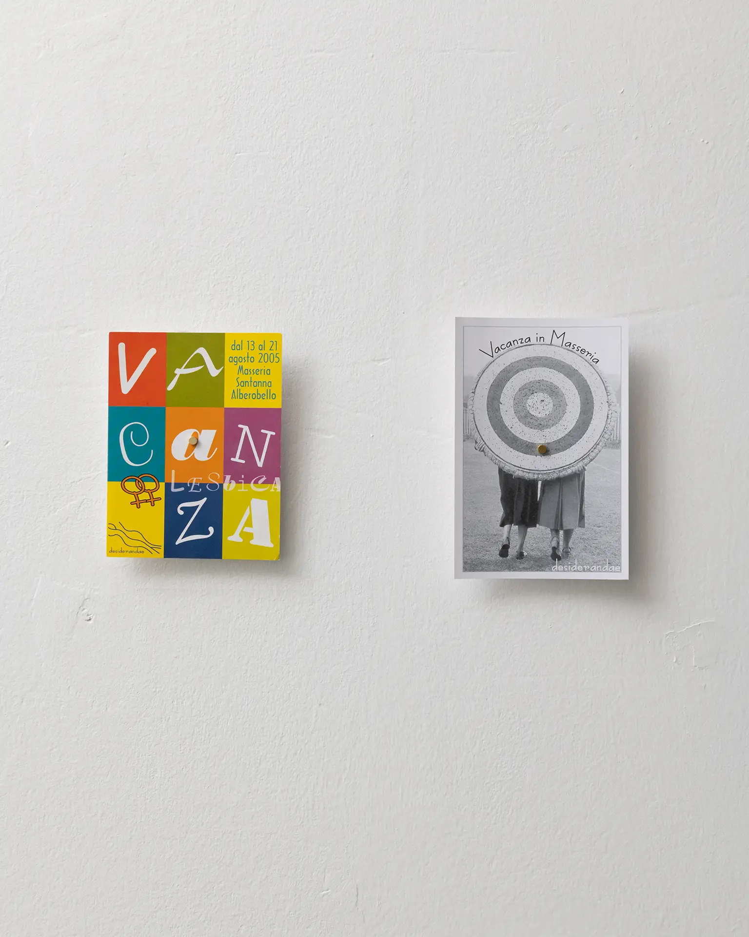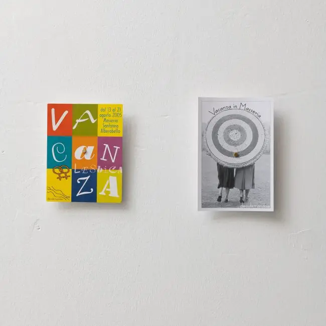 A questi aspetti, la mostra accosta simboli di desiderio e rivendicazione contemporanea, diffondendo nuova energia e visione di futuro. La mostra esplora quindi i margini di auto(rappresentazione) possibili per le donne queer che hanno vissuto la regione negli scorsi decenni, contribuendo a riscoprire la genealogia di questa minoranza e a tratteggiare un’iconografia lesbica terrona condivisa.