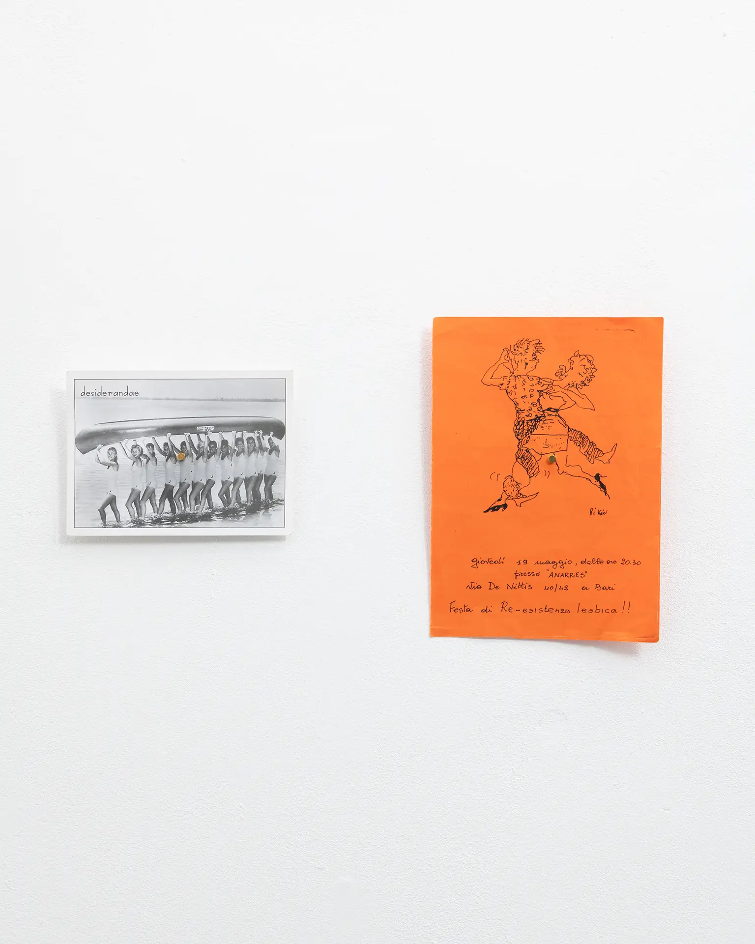 A pochi giorni dalla fine del 2024, “La prima festa dell’anno” è una celebrazione di identità marginali e sovversioni temporali. Un invito alla festa, al ballo, al desiderio, e alla pronuncia di parole e amori troppo a lungo rimasti tabù. “La prima festa dell’anno” intreccia voci e visi delle donne della rete queer pugliese, creando un racconto corale e intergenerazionale atto alla rivendicazione ed elaborazione di narrazioni e immaginari condivisi. Attraverso un’esplorazione intima e antropologica degli album di famiglia e la riscoperta di materiali grafici delle Desiderandae – gruppo lesbico separatista attivo in Puglia dai primi anni ’90 – la mostra svela una storia nascosta del lesbismo pugliese, accostando divergenti temporalità: da un lato, feste, vacanze e momenti di liberazione dal monolita eteropatriarcale, dall’altro sfide individuali vissute da bambine in crescita su campi da calcio, spiagge e feste di carnevale.