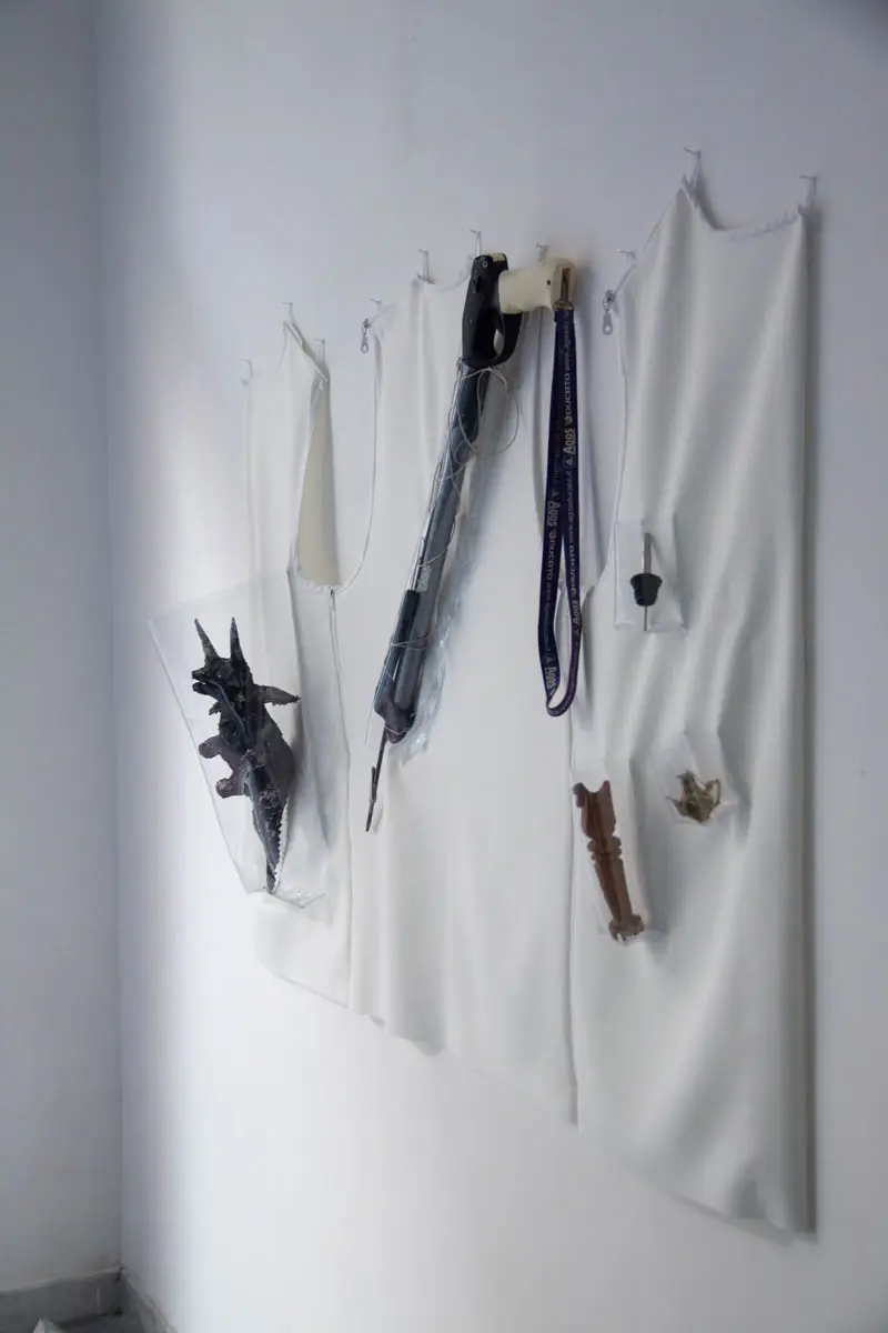 Tanja Hamester si inserisce nel solco di questa distinzione per costruire una archeologia personale dei luoghi che incontra. Sin dal suo arrivo a Bari lo scorso agosto, infatti, l’artista ha portato avanti un’indagine dello spazio cittadino usando una pratica su cui lavora da anni, un insieme di tattiche volte a non cadere nella rappresentazione stereotipata di un luogo. Ad approcci che riducono un posto ai suoi “luoghi comuni” attraverso riferimenti a monumenti, edifici, figure, ed eventi del passato Tanja Hamester oppone una strategia dal basso che si basa su incontri, percorsi e storie. ​​I gesture objects sono gli elementi fondamentali di questa strategia artistica. Ispirati dall’indagine di un territorio, questi oggetti costituiscono un archivio personale, che testimonia il passaggio implicato di un corpo in movimento, quello dell’artista.